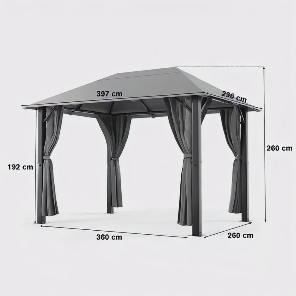 Gartenpavillon Modern Günstig 3x3 / 3x4 mit Festem Dach und Dachplane Wasserdicht