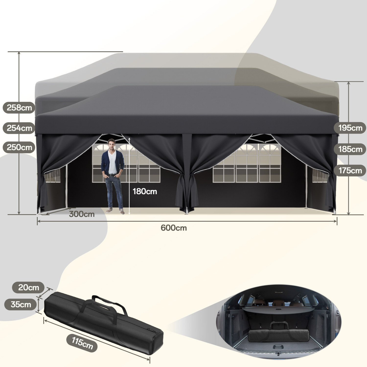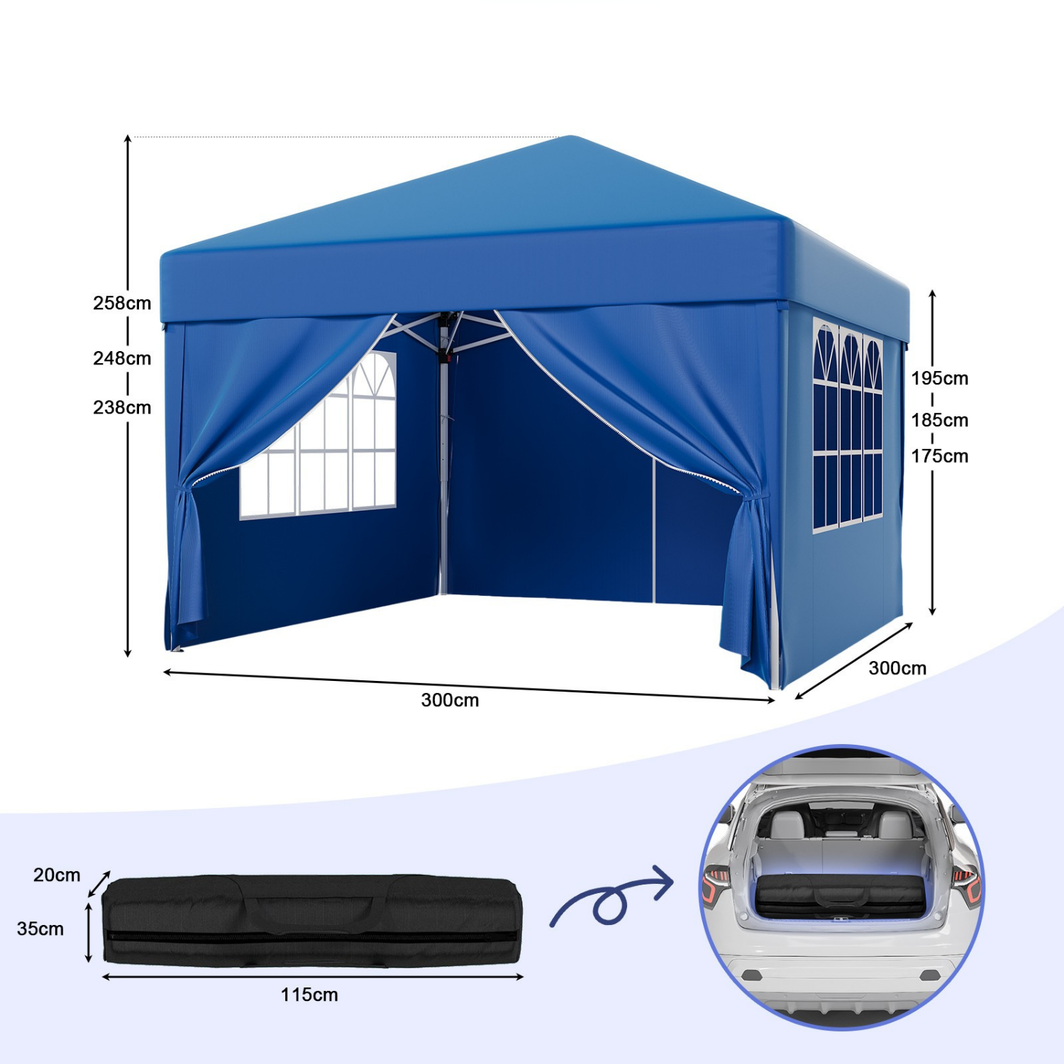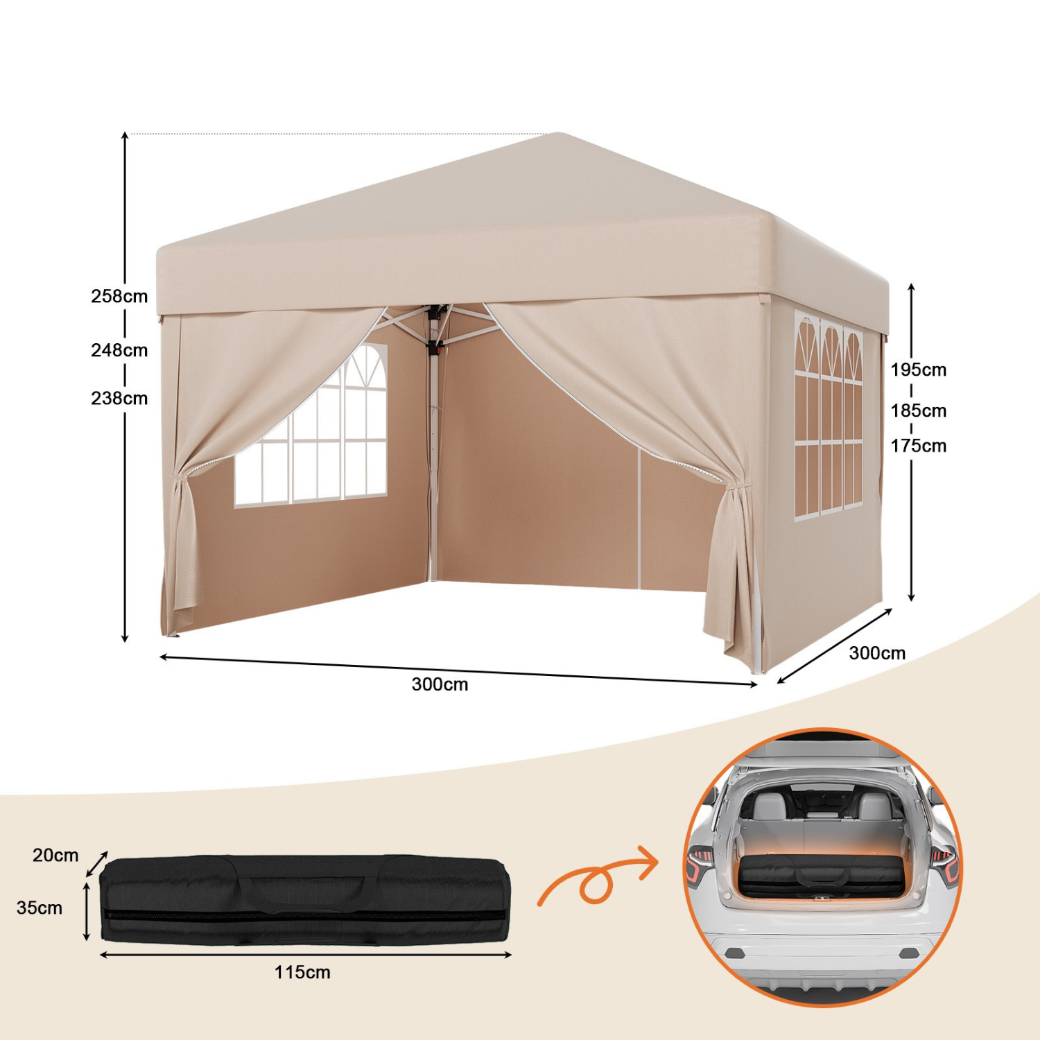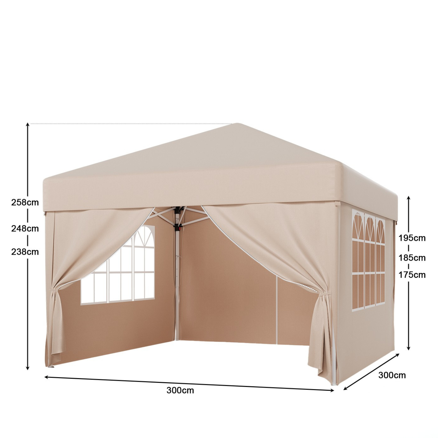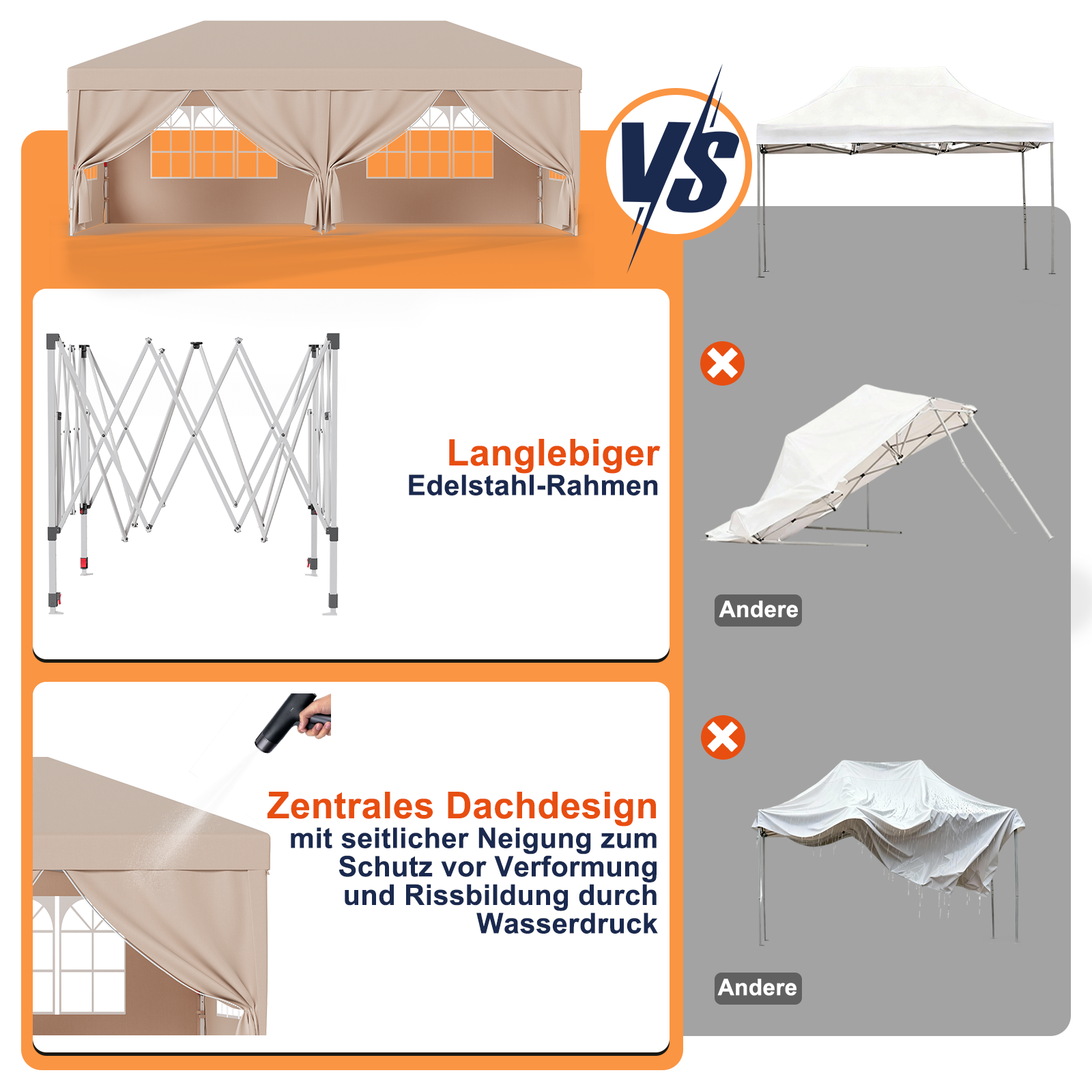 Das hochwertige Zeltmaterial bietet zuverlässigen Schutz vor intensiver Sonneneinstrahlung und ist gleichzeitig wasserdicht. So bleiben Sie auch bei wechselhaftem Wetter angenehm kühl und trocken – ideal für Garten, Terrasse oder Outdoor-Events.