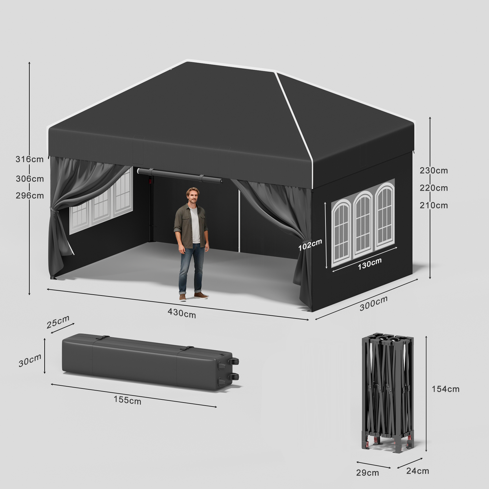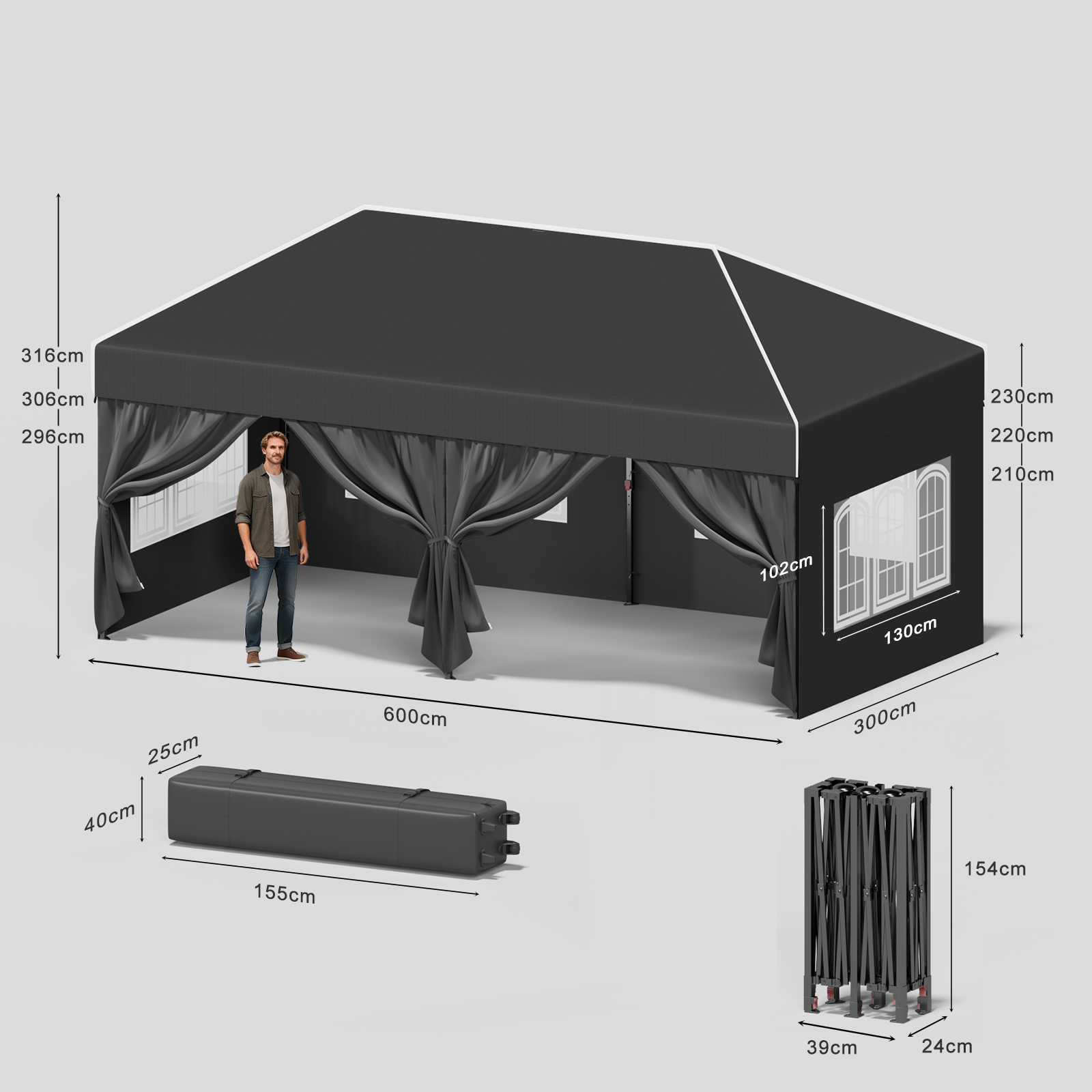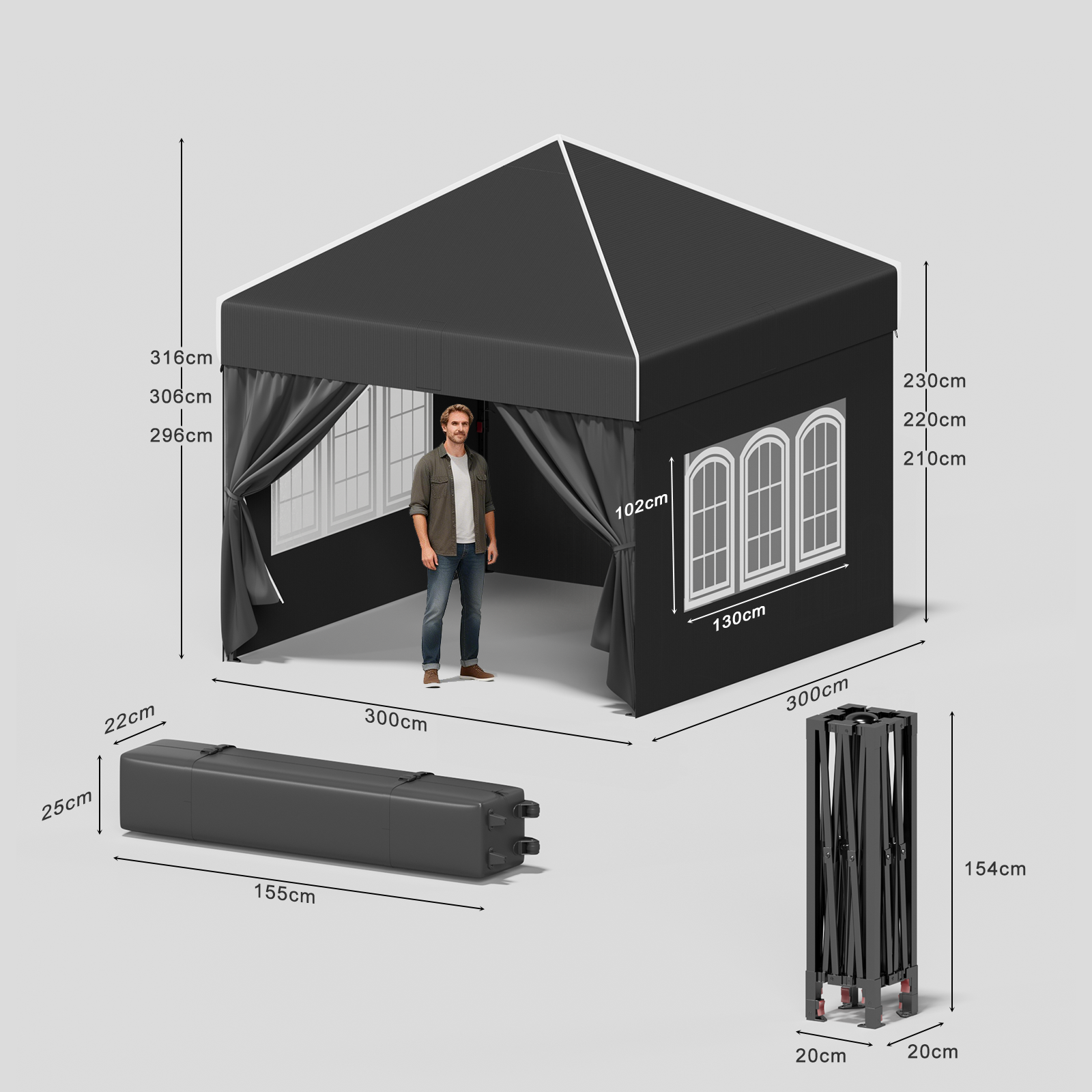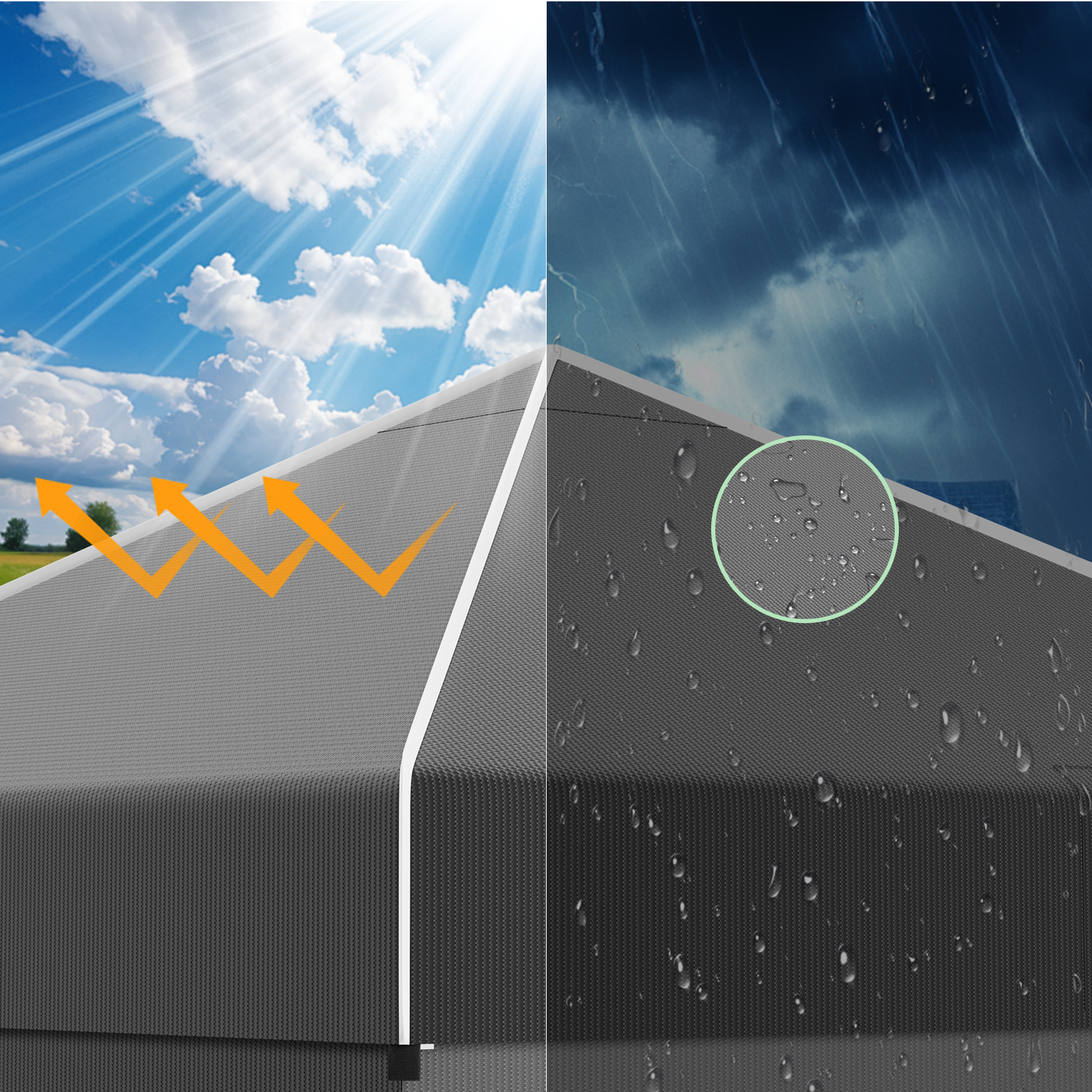 Das hochwertige Zeltmaterial bietet zuverlässigen Schutz vor intensiver Sonneneinstrahlung und ist gleichzeitig wasserdicht. So bleiben Sie auch bei wechselhaftem Wetter angenehm kühl und trocken – ideal für Garten, Terrasse oder Outdoor-Events.