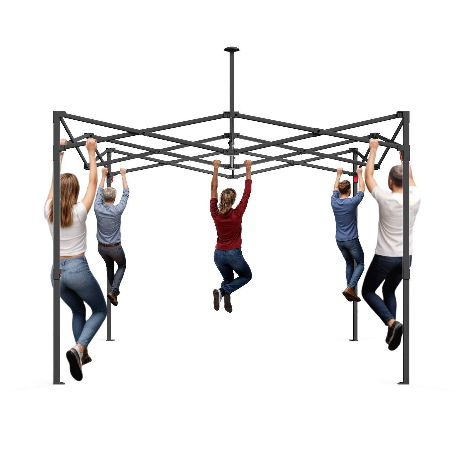 Das stabile Gestell des Yardwell Zeltes ist besonders belastbar und für hohe Stabilität ausgelegt. Dank der robusten Konstruktion und hochwertigen Materialien kann das Gestell theoretisch das Gewicht von bis zu fünf erwachsenen Personen tragen, ohne sich zu verformen. Dies sorgt für maximale Sicherheit, Standfestigkeit und Zuverlässigkeit – selbst bei Wind, Regen oder intensiver Nutzung.